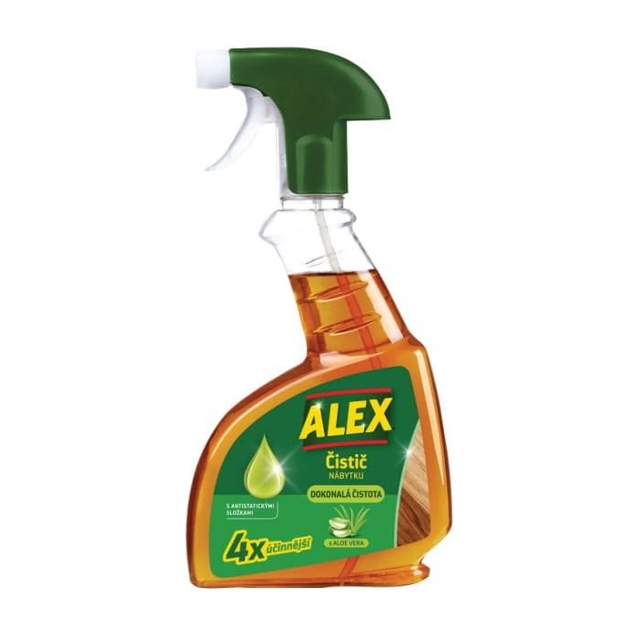 ALEX Renovátor nábytku antistatický s prírodnými výťažkami z dreva zabezpečuje čistotu a výživu potrebnú na zachovanie nábytku, takže vyzerá ako nový. Vďaka svojmu zloženiu zabraňuje opätovnému usadzovaniu prachu a zanecháva nábytok dlhšiu dobu čistejší. Obnovuje prirodzený lesk, eliminuje odtlačky prstov a zanecháva príjemnú vôňu aloe vera. Redukuje 90% peľových alergénov a roztočov.