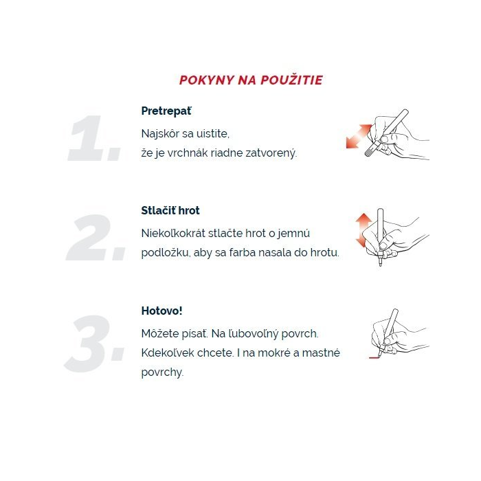 Vhodný je na vnútorné aj vonkajšie použitie. Má dlhú trvanlivosť a odstrániť sa dá acetónom.