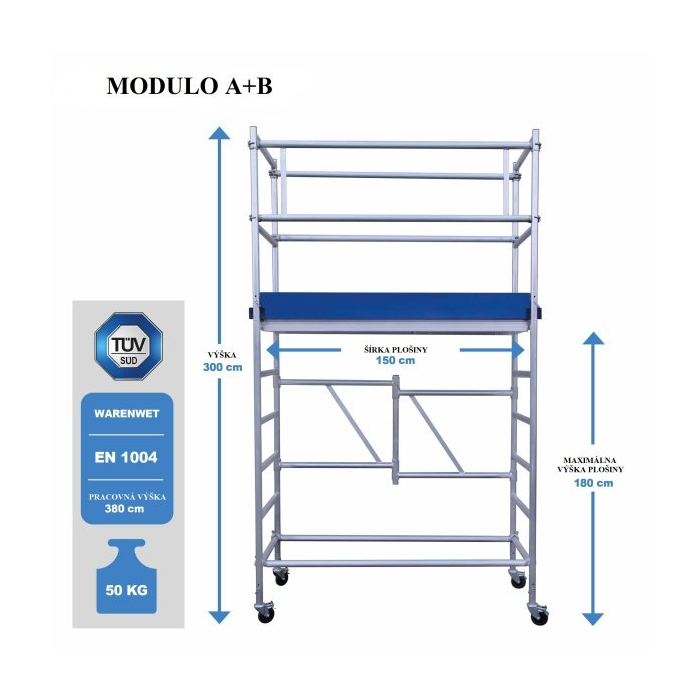 Toto lešenie (Modulo B) sa predáva ako samostatný kus. Je k nemu potrebné zakúpiť si aj Modulo A. Samostatne sa nedá použiť.