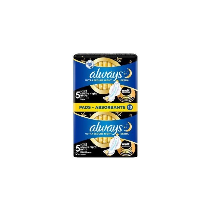 Always vložky Ultra Secure Night Extra s krídelkami majú 3 ochranné prvky, takže sa nemusíte v noci prebúdzať a kontrolovať, či vložka nepreteká alebo nepotrebuje vymeniť. O 9% väčšia predná časť a o 85% väčšia zadnú časť (v porovnaní s Always Ultra Normal) zabezpečuje spolu s technológiou LeakGuard kompletnú ochranu, čo v noci predchádza pretečeniu. Absorpčná systém InstantDry absorbuje tekutinu v priebehu niekoľkých sekúnd a odvádza vlhkosť od pokožky. Navyše obsahuje technológiu OdourLock, ktorá neutralizuje zápach, takže sa môžete cítiť čistá a svieža.