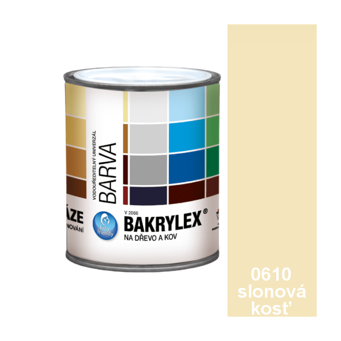 Bakrylex Matný V2066 je ekologicky priaznivý, univerzálny krycí matný email, ktorý je možné riediť vodou a je určený pre vnútorné a vonkajšie nátery dreva, drevotriesky, múrov, papiera, kovu a pod. Rýchloschnúci email vyniká vysokou odolnosťou voči poveternostným vplyvom a je vhodný na detský nábytok a hračky.
