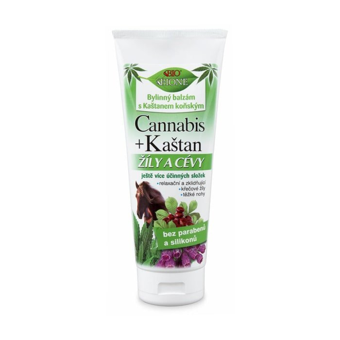 Balzam Cannabis na Žily a cievy obsahuje nielen konopný olej, ale aj extrakt z celej listovej časti rastliny. Extrakt aj olej Cannabis je známy svojím používaním v ľudovom liečiteľstve pre svoje údajné protizápalové, antibakteriálne, protialergické a regeneračné vlastnosti na pokožku. Olej zo semienok rastliny Cannabis sa v ľudovom liečiteľstve s obľubou odporúča na rôzne dermatitídy, u atopického ekzému, lupienky, akné a oparov. Má upokojujúce a zvláčňujúce účinky, chráni pokožku pred vysúšaním a praskaním. Ďalej obsahuje hydratačný glycerín, rastlinné bambucké maslo, panthenol, alantoín a vitamín E. Polyfenolické látky a escin z rastlinných extraktov sa s obľubou tradične používajú ako zložky na kŕčové žily.