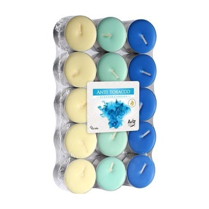 Vytvorte si príjemnú atmosféru s čajovými vonnými sviečkami s vôňou anti tabak. Sviečky v balíčku sú sfarbené do troch odtieňov. Jedna sviečka vydrží horieť až 4 hodiny.