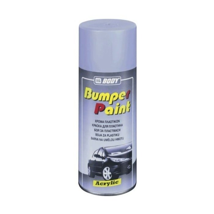 BODY BUMPER PAINT sprej na plasty je rýchloschnúca termoplastická akrylátová farba na plasty (s výnimkou polyetylénu). Je ideálna na plastové diely automobilov ako napr. nárazníky, ozdobné lišty apod. Má vynikajúce krycie schopnosti. Nevyžaduje použitie základnej farby.