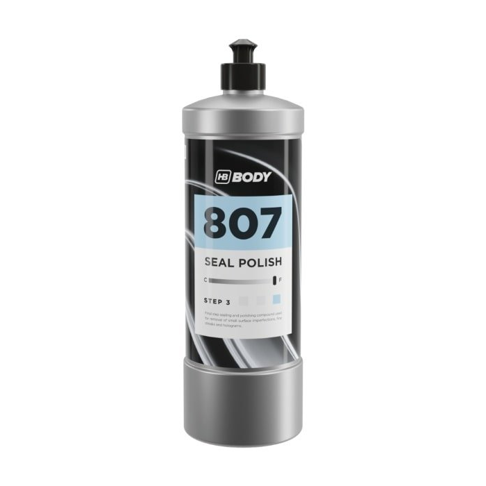 Vysoko kvalitná jemná leštiaca zmes. HB BODY 807 (uzatváracia leštiaca zmes) je posledný lešttiaci prostriedok potrebný na leštenie. V jednom kroku trvalo vyleštíte a utesníte lak. Bez silikónu. Odstráni malé povrchové nedokonalosti, poskytuje perfektný hologram bez povrchovej úpravy a vodu odpudzujúci účinok. Môže byť použitý s HB žltou podložkou alebo HB vafľou.