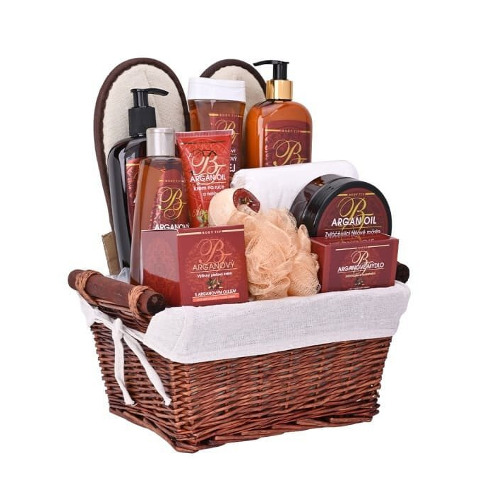 Darčekový kôš výživnej kozmetiky so vzácnym arganovým olejom z Maroka pre starostlivosť o pokožku tela i tváre. Doprajte svojim blízkym luxus s nádychom Orientu.