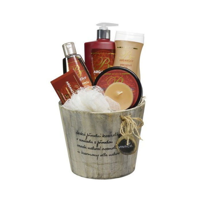 Darčekový kôš výživnej kozmetiky so vzácnym arganovým olejom z Maroka pre starostlivosť o pokožku tela i tváre. Doprajte svojim blízkym luxus s nádychom Orientu.