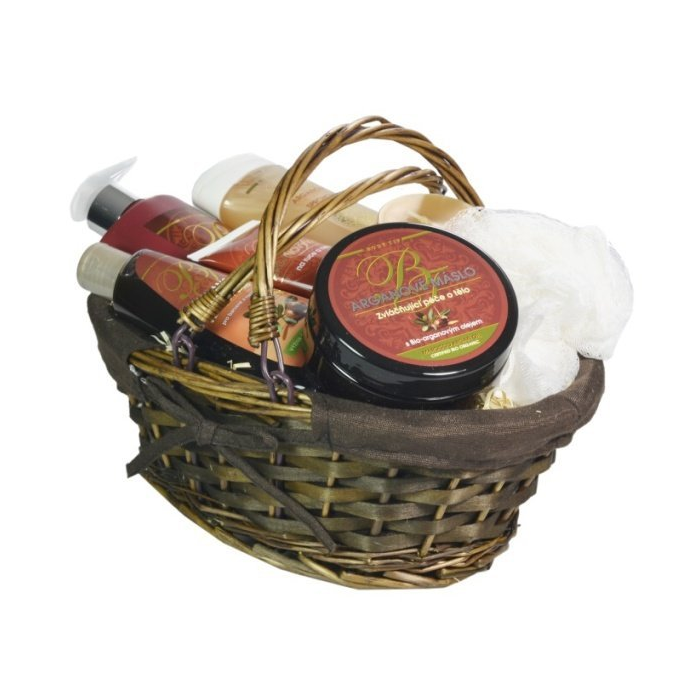 Darčekový kôš výživnej kozmetiky so vzácnym arganovým olejom z Maroka pre starostlivosť o pokožku tela i tváre. Doprajte svojim blízkym luxus s nádychom Orientu.