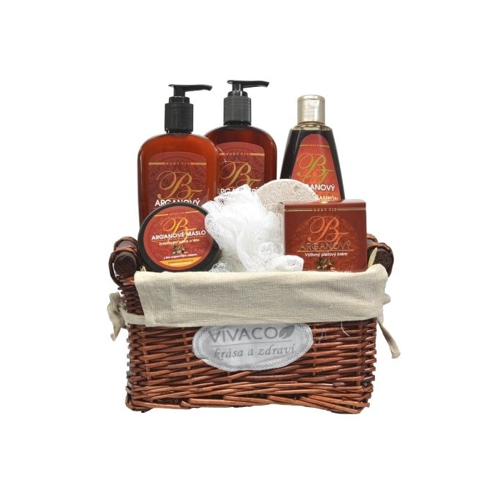Darčekový kôš výživnej kozmetiky so vzácnym arganovým olejom z Maroka pre starostlivosť o pokožku tela i tváre. Doprajte svojim blízkym luxus s nádychom Orientu.