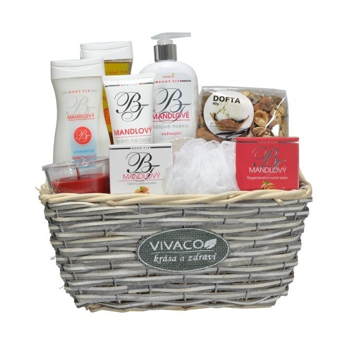 Darčekový košík výživnej mandľovej kozmetiky pre starostlivosť o pokožku tela i tváre. Obzvlášť vhodné pre suchú a jemnú pleť. Každý výrobok zaručí najlepšiu staroslivosť o zrelú pleť - kozmetický darček, ktorý poteší každú ženu.