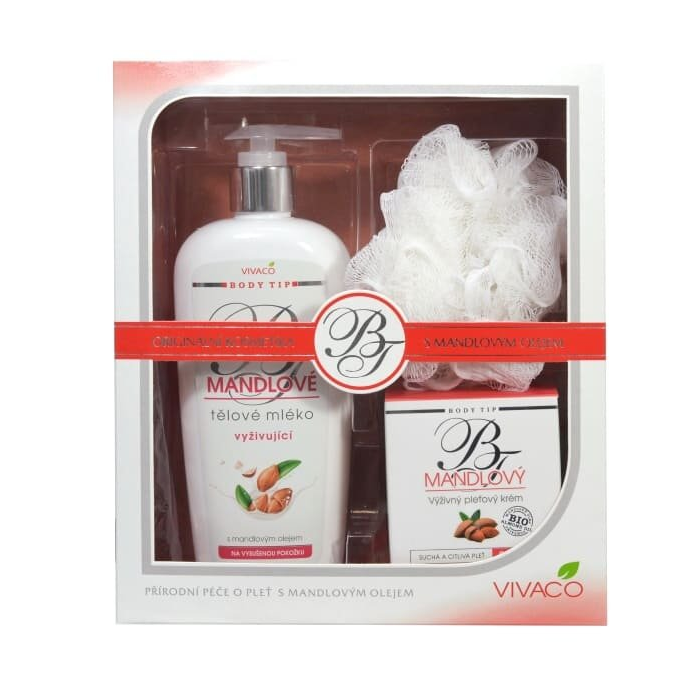 Darčekové balenie výživnej mandľovej kozmetiky pre starostlivosť o pokožku tela i tváre. Obzvlášť vhodné pre suchú a jemnú pleť. Každý výrobok zaručí najlepšiu staroslivosť o zrelú pleť - kozmetický darček, ktorý poteší každú ženu.