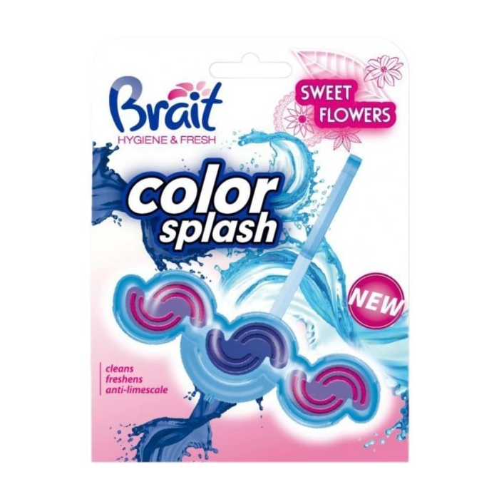 Brait WC blok Color Splash Sweet flower prekvapí nielen hygienickou silou, ale aj unikátnym estetickým dizajnom a sviežosťou. Prevonia toaletu pri každom spláchnutí príjemnou vôňou. Odstráni usadeniny a vodný kameň a vytvorí bohatú penu, ktorá dodá záchodovej mise lesk.