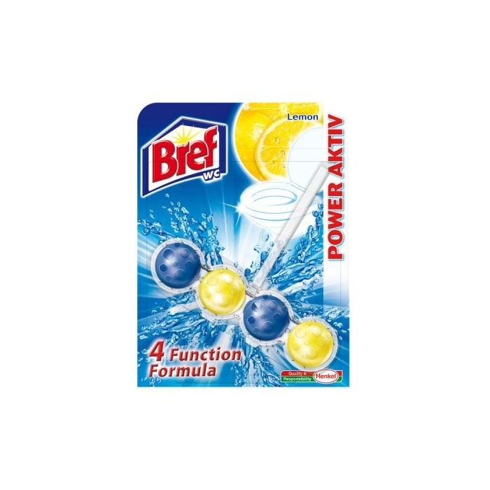 Bref Power Aktiv Lemon 51g Bref Power Aktiv je jedinečnou novinkou, ktorá spĺňa 4 funkcie: - WC dodá dokonalú čistotu, - vytvorí dokonalú čistiacu penu, - dokonale ochraňuje pred vodným kameňom, - nádherne osvieži vzduch.