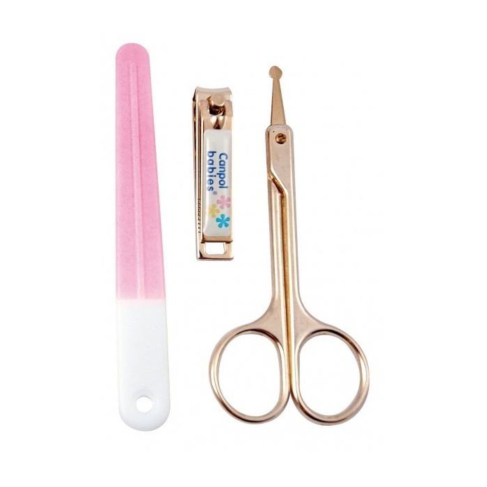 Canpol Babies detský manikúrový set 3ks Canpol Babies detský manikúrový obsahuje manikúrové nožničky s guľatým koncom, pilník a kliešte na nechty.