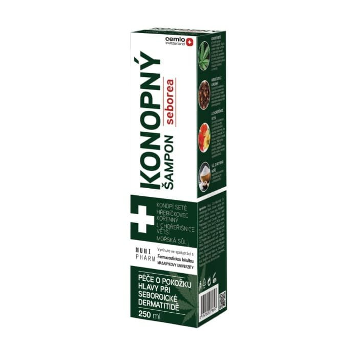 Cemio Konopný šampón Seborea so soľou z Mŕtveho mora, konopným a klinčekovým olejom je ideálny pre citlivú a problematickú pokožku hlavy. Poskytuje šetrnú a účinnú starostlivosť najmä pri sklonoch k seboroickej dermatitíde a tvorbe lupín.