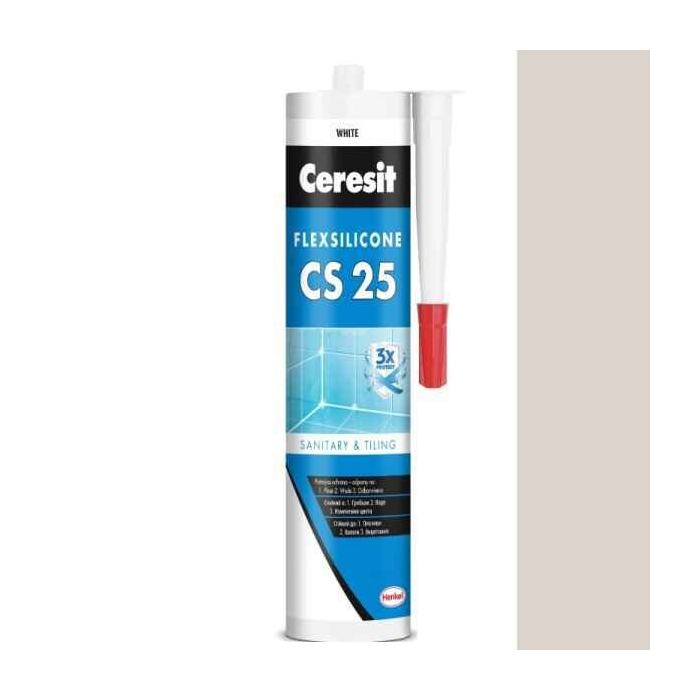 CERESIT CS 25 je sanitárny silikón určený na vyplnenie dilatačných a spojovacích škár medzi keramickými obkladmi a dlažbou v rohoch alebo v styku stien, podláh a na usadzovanie zariaďovacích predmetov v sanitárnej oblasti. Vďaka trvalej elasticite a odolnosti proti vode je vhodný do oblastí trvalo zaťažených vlhkosťou, ako napr. kuchyne, sprchy, kúpeľne, toalety, balkóny, terasy a pod.