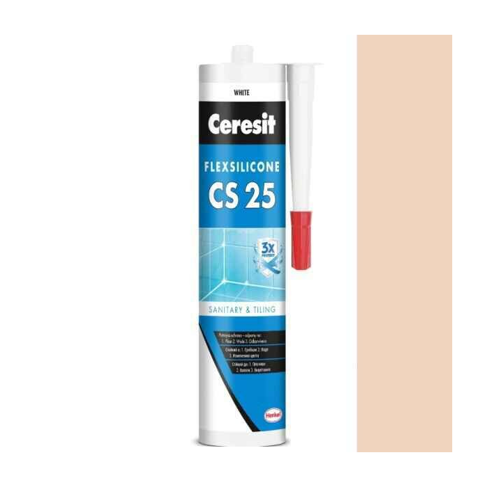 CERESIT CS 25 je sanitárny silikón určený na vyplnenie dilatačných a spojovacích škár medzi keramickými obkladmi a dlažbou v rohoch alebo v styku stien, podláh a na usadzovanie zariaďovacích predmetov v sanitárnej oblasti. Vďaka trvalej elasticite a odolnosti proti vode je vhodný do oblastí trvalo zaťažených vlhkosťou, ako napr. kuchyne, sprchy, kúpeľne, toalety, balkóny, terasy a pod.