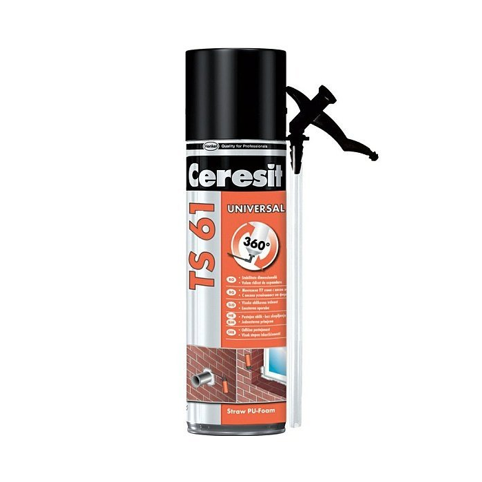 Ceresit TS 61 je polyuretánová jednozložková trubičková montážna a vyplňovacia pena. Vytvrdzuje vzdušnou vlhkosťou. Pena je samorozpínacia, počas vytvrdzovania sa rozpína približne dvojnásobne. Pena priľne na drevo, betón, kameň, kov.