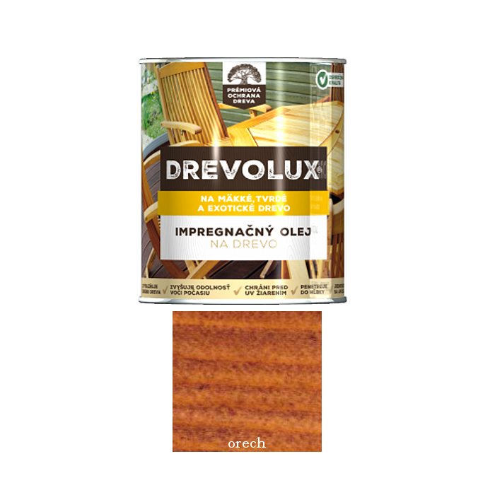 DREVOLUX Impregnačný olej na drevo sa používa na pravidelnú údržbu a ochranu mäkkého, tvrdého a exotického dreva v interiéri a exteriéri. Olej penetruje do hĺbky, účinne chráni drevo pred starnutím, odďaľuje následky pôsobenia vlhkosti a poveternostných vplyvov. Zachováva prirodzenú štruktúru dreva, vytvára vodoodpudivý povrch. Je vhodný na povrchovú úpravu záhradného nábytku, okeníc a rôznych drevených konštrukcií ako sú pergoly, verandy, altánky, drevené obklady a ploty. Nie je vhodný na nátery voskovaného dreva.