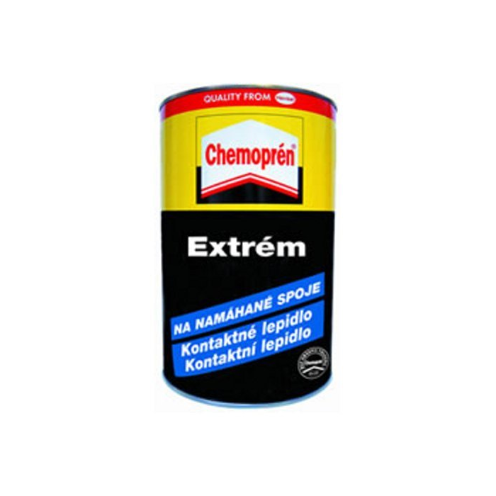 Popis Chemopren Extreme Špeciálne lepidlo pre extrémne namáhané spoje s vyššou odolnosťou: pri pôsobení tepla až do 110°C, pri pôsobení vody, pri dlhotrvajúcom ohýbaní, pod vxysokým tlakom. Oblasť použitia: Pre materiály: koža, drevo, guma, tvrdý plast, kovy, textil, kartón a mnohé iné. Pro materiály: kůže, dřevo, gumu, tvrzené plasty, kovy, textil, překližku, kartón a mnohé jiné. Pri lepene nesavom materiáli doporučujeme riediť s chemopren riedidlo. Hustota : cca 0,86 g/cm3.