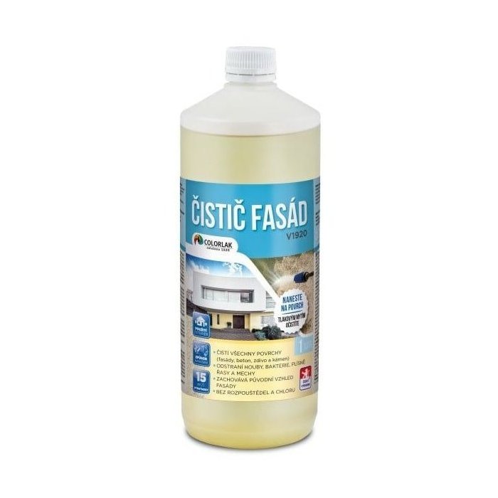 ČISTIČ FASÁD V1920 je určený na čistenie fasád, muriva, betónu, omietok, kameňa, strešné krytiny a ďalších minerálnych plôch proti biologickému napadnutiu (huby, baktérie, plesne, riasy). Zabraňuje rastu machov v exteriéri. ČISTIČ FASÁD má široké využitie, možno ho použiť napr. Aj na zámkovú dlažbu, sochy, pomníky a pod. Okrem likvidácie poskytuje V1920 aj preventívnu ochranu proti novému vzniku biologického napadnutia. Pre posilnenie dlhodobejšie preventívnej ochrany už očistené plochy je vhodné použiť OCHRANU FASÁD V1930. ČISTIČ FASÁD V1920 neobsahuje chlór, nezapácha a nehrozí nebezpečenstvo zmeny odtieňa fasády. Plochy opatrené Čistič FASÁD nesmie prísť do styku s potravinami, krmivami a pitnou vodou. Výrobok nesmie byť použitý pre nátery detského nábytku a hračiek.