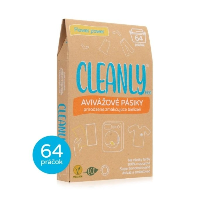 Avivážové pásiky Cleanly eco s vôňou Flower Power, ktoré vám prirodzene zmäkčia a rozvoňajú bielizeň. Sú praktickou alternatívou k bežným avivážam. 64 pásikov = 64 voňavých práčok :)