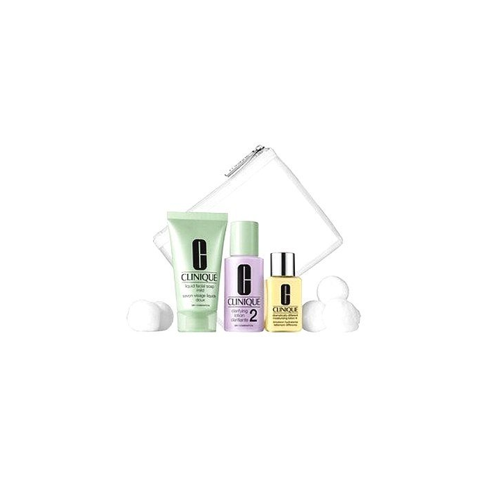 CLINIQUE 3 Step System Great Skin in 10 Days Set, Darčeková kazeta Liquid Facial Soap Mild 30ml + Clarifying Lotion 2 30ml + Dramatically Different Moisturizing Lotion+ 15ml + kozmetická taška Darčeková kazeta obsahuje: - Liquid Facial Soap Mild - Toto tekuté mydlo ľahko čistí pleť bez akéhokoľvek podráždenia, odstraňuje všetky nečistoty, kožný maz a osviežuje. Zanecháva pleť úplne čistú, sviežu a bez šupiniek. - Clarifying Lotion 2 - Tonikum slúži na dočistenie pleti od všetkých nečistôt a odumretých buniek. Okamžite pleť zjemní a príjemne osvieži. Pleť je krásne jemná, čistá a hebká. Pomáha pokožke zvyšovať schopnosť absorbovať viac vlahy a zvyšuje prirodzený proces obnovy kožných buniek. - Dramatically Different Moisturizing Lotion+ - Hydratačná pleťová starostlivosť, ktorá udrží v pleti vlhkosť i mladosť. S novým zložením dokáže posilniť vlastnú hydratačnú bariéru pleti o 54%. Pleť je hebká a pružná, zdravo prežiarená. Obnovuje a upokojuje pleť. - kozmetická taška