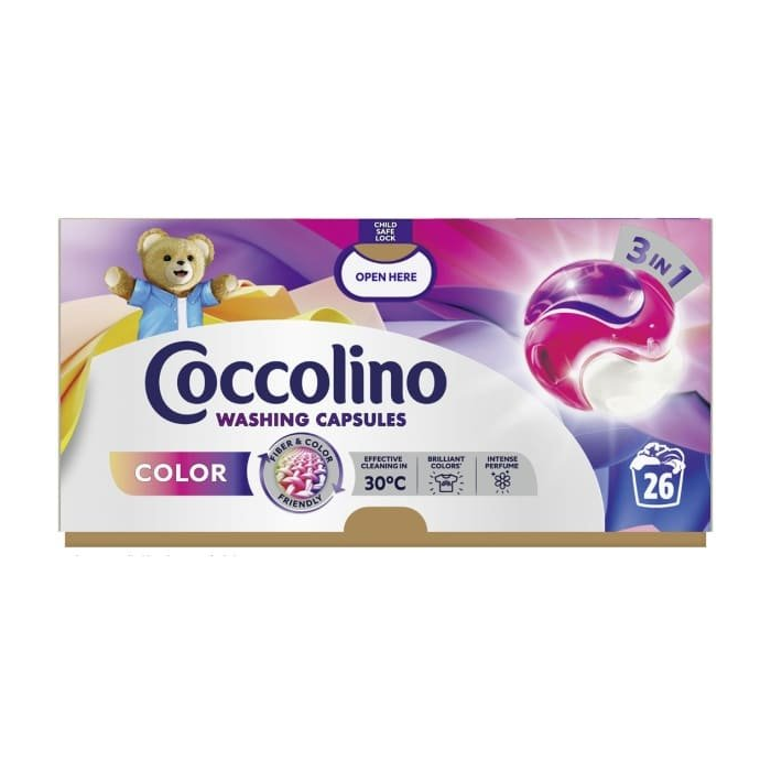 Gélové pracie kapsuly Coccolino sú navrhnuté špeciálne pre farebné oblečenie. Vďaka ich praktickému prevedeniu je pranie jednoduché, rýchle a bez zbytočného neporiadku. Nové, vylepšené zloženie zabezpečuje ešte rýchlejšie rozpúšťanie, a to aj pri praní v studenej vode.