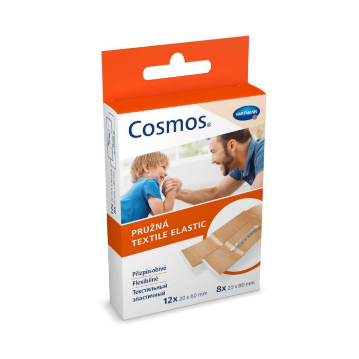 COSMOS Pružná náplasť na rany elastická textilná 20ks Elastická nedelená textilná náplasť na zranenia na kĺboch a prstoch. Náplasť je telovej farby a je priedušná. - náplasť je určená na ošetrenie menších poranení, predovšetkým v oblasti kĺbov a kónických častí tela - priedušný materiál umožňuje dýchanie pokožky - náplasť dobre drží pri pohybe - vyznačuje sa vysokou elasticitou - 20x60mm = 12ks a 20x 80mm = 8ks