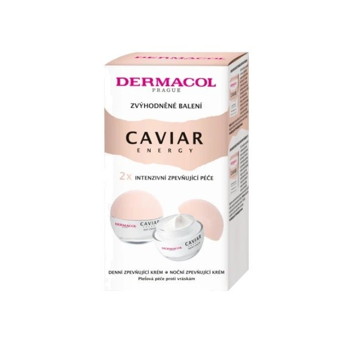 Duopack Caviar energy denný + nočný krém CAVIAR ENERGY spevňujúci denný krém ponúka nový rozmer v oblasti omladenia pleti, a to čo bolo doteraz nemožné, s naším kaviárovým krémom možné je. Hĺbková starostlivosť podporuje regeneráciu bunkovej štruktúry počas spánku, pleť spevňuje a vyživuje. Extra účinné ingrediencie redukujú vrásky, zabraňujú predčasnému starnutiu, vypĺňajú kontúry tváre a celkovo tak zlepšujú pevnosť a pružnosť pokožky. Vyskúšajte rokmi preverenú silu kaviáru. Extra bohatá textúra spevňujúceho krému má príjemnú hodvábnu konzistenciu, dobre sa vstrebáva a neupcháva póry. Tento spevňujúci kaviárový denný krém s liftingovým efektom má extra účinné zloženie s kaviárovým extraktom, skvalénom, morskými mikroriasami, koenzýmom Q1O a bambuckým maslom, a preto je tou najluxusnejšou starostlivosťou, akú môžete svojej starnúcej pleti dopriať. Vďaka obsahu bunkového komplexu zvyšuje odolnosť buniek pleti pred voľnými radikálmi a pomáha zlepšovať pružnosť pleti. UVA / UVB filtre s OF 15 chránia pred slnečným žiarením a vznikom pigmentových škvŕn.