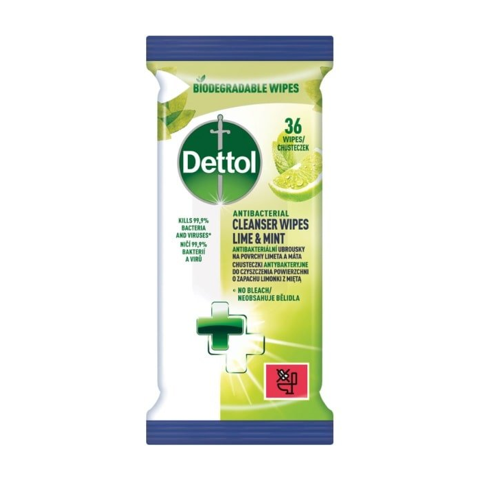 Dettol antibakteriálne utierky na povrchy Limetka a Mäta, 36 ks