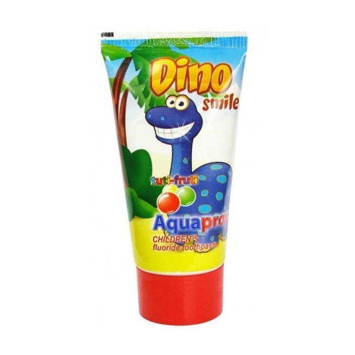Dino Smile detská zubná pasta s fluórom a príchuťou tuti fruti.