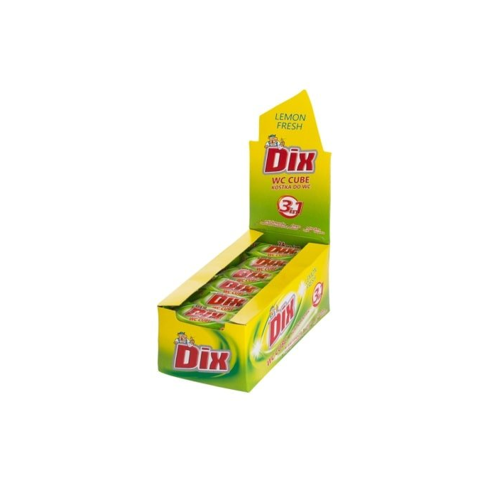 Tableta DIX má čistiace vlastnosti, zabraňuje usadzovaniu vodného kameňa, vytvára bohatú penu a dodáva vode intenzívnu farbu. WC tableta stačí na približne 400 spláchnutí.