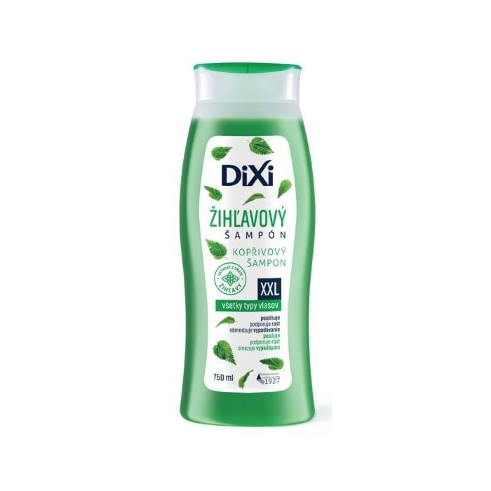 Žihľavový šampón Dixi obsahuje vzácne výťažky zo žihľavy bohatej na vitamíny, aminokyseliny a minerály. Je skvelým pomocníkom v boji proti vypadávaniu vlasov, zamedzuje tvorbe lupín aj nadmernému masteniu.