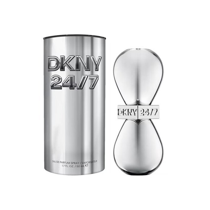 Dizajn DKNY 24/7 odráža samotný New York. Flakón v tvare presýpacích hodín je symbolom nepretržitého plynutia času v dynamickom meste a predstavuje premenu dňa na noc a naopak. Flakón je povrchovo ošetrený chrómovou striebornou vrstvou, ktorá je poctou ikonickým architektonickým prvkom panorámy mesta. Futuristická strieborná metalická nádobka je navrhnutá tak, aby bola výrazným kúskom zhmotňujúcim ducha New Yorku a aby upútala pozornosť tých, ktorí oceňujú jedinečnú kombináciu nadčasovosti a špičkového dizajnu mesta.