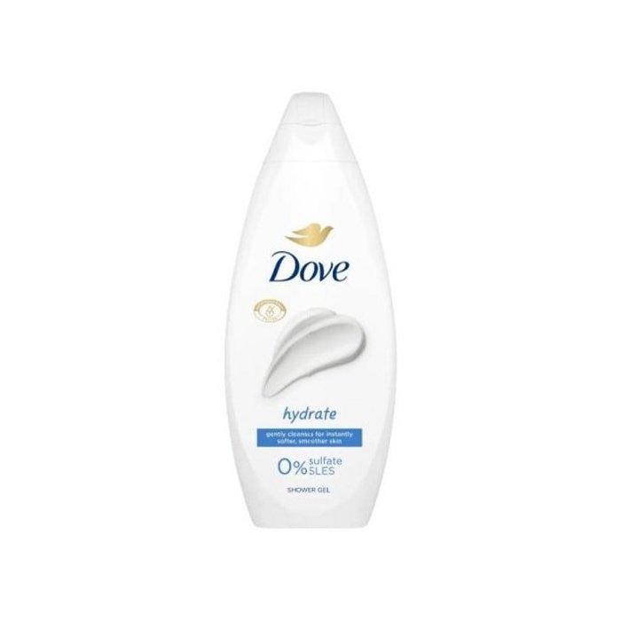 Dove sprchovací gél Hydrate s jemnou púdrovou vôňou jemne čistí pre okamžite jemnejšiu a hladšiu pokožku.