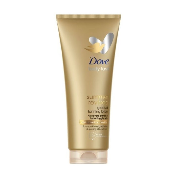 Dove body love summer revived tónovacie telové mlieko je vhodné pre svetlú až stredne tmavú pokožku. Jemné tónovacie zložky dodávajú pokožke zdravo vyzerajúce bronzové opálenie. Zloženie obohatené o jedinečnú technológiu Cell Moisturisers hydratuje do hĺbky. S tónovacím telovým mliekom Dove body love summer revived bude vaša pokožka ako pobozkaná slnkom.