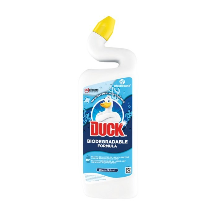 S pomocou WC čističa DUCK Oceal Splash vyčistíte perfektne vašu toaletu. Jeho biologicky odbúrateľné zloženie predstavuje veľké plus na našu prírodu. Tento tekutý gél DUCK sa postará o celkovú hygienu vášho WC, odstráni vodný kameň, a dokonca aj odolné škvrny. Unikátny tvar hrdla fľaše vám umožní lepšie dosiahnuť pod okraj. WC čistič DUCK Ocean Splash dodá vašej toalete dlhotrvajúcu vôňu.