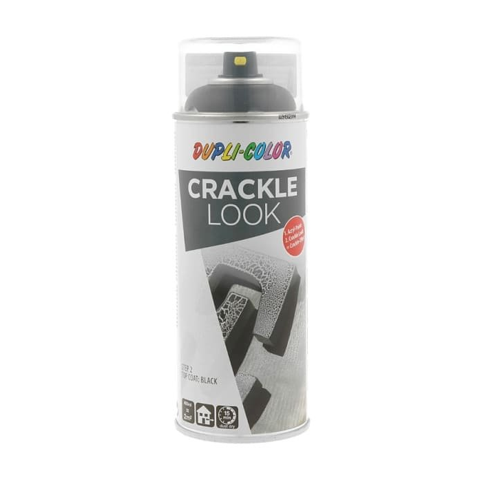 Dupli Color Crackle je farba v spreji vytvárajúca dvojfarebný „popraskaný efekt“. Jednoducho s ňou vytvoríte pôsobivý starožitný vzhľad. Vďaka obrovskému množstvu podkladových akrylových alebo nitrokombinačných farieb sú možnosti efektných kombinácií takmer neobmedzené. Akonáhle na vopred nastriekaný povrch nanesiete Crackle farbu, môžete ihneď pozorovať, ako sa na povrchu začínajú vytvárať „praskliny“.