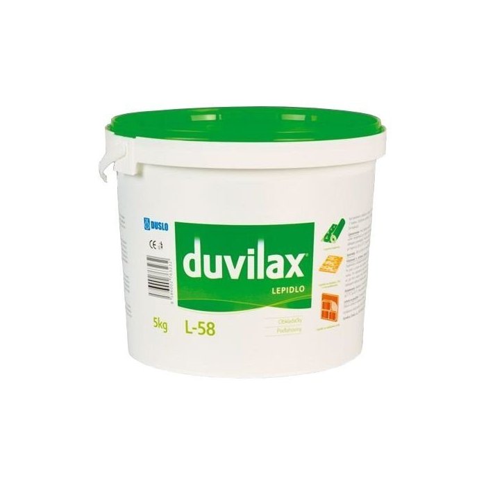 Duvilax® L-58 je univerzálne stavebné lepidlo. Používa sa na lepenie textilných a PVC- podlahovín, linolea, marmolea, vinylazbestové a mramorové dlažby, keramických a polystyrénových obkladov a podhľadov apod. Uvedené materiály sa môžu lepiť na podklady z cementového poteru, na omietky, drevovláknité a drevotrieskové dosky, na anhydritové a sadrové vyrovnávacie vrstvy apod. Keramické materiály sa môžu lepiť aj na podklady neprimajúce vlhkosť z lepidla. Používa sa neriedený. Za účelom zníženia tekutosti, resp. zvýšenia hrúbky lepidla, sa môže bezprostredne pred lepením primiešať cement alebo jemný kremičitý piesok. Na nanášanie sa používa zubová stierka.