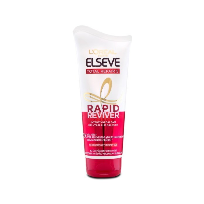 Hĺbkový balzam na vlasy L'Oréal Paris Elseve Total Repair 5 Rapid Reviver poskytuje vašim vlasom až 2x väčšiu starostlivosť! Intenzívne zloženie obohatené o aminokyseliny a vitamín E zaistí okamžitú regeneráciu, posilnenie a ošetrenie. Balzam na vlasy Elseve Total Repair 5 Rapid Reviver vyživuje poškodené vlasy bez zaťaženia a zanecháva ich krásne hebké, pružné a regenerované.
