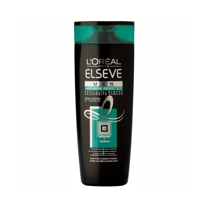 ELSEVE Men Arginine Resist X3 šampón poskytuje starostlivosť pre slabé vlasy s tendenciou vypadávať. Nové zloženie je obohatené o Arginine + Taurine. Arigine je nevyhnutný pre rast vlasov a spoločne s taurínom pomáhajú obnoviť silu vlasového vlákna od korienkov. Taurín má posilňujúce účinky.