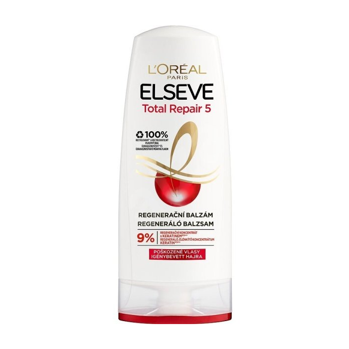 ELSEVE Total Repair 5 je regeneračný balzam s expertnou starostlivosťou pre poškodené a oslabené vlasy. Pro-Kératine obnovuje vlasové vlákno a posilňuje štruktúru vlasu. Céramide zaceluje a vyhladzuje povrch vlasu.