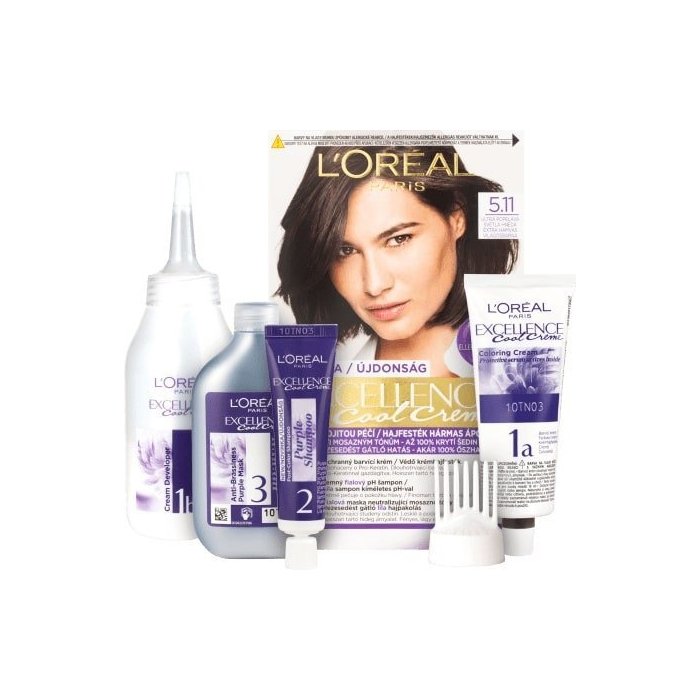 Permanentná farba na vlasy s trojitou starostlivosťou má krémovú konzistenciu, 100% kryje šediny a je šetrná k vlasovej pokožke. Nová rutina, vyvinutá špeciálne pre odtiene Excellence Cool Creme, odhalí žiarivú farbu a uchová ju nádherne studenú na dlhú dobu. Farba chráni, posilňuje a obnovuje vlasové vlákno. Súčasťou balenia je jemný fialový pH šampón a maska. Šampón šetrne stará o pokožku hlavy a z vlasov vymýva zvyšky farby. Uhladzuje vlasy a odhaľuje ich žiarivú farbu. Maska vďaka špeciálnemu fialovému zloženiu neutralizuje nechcené žlté a mosadzné tóny.