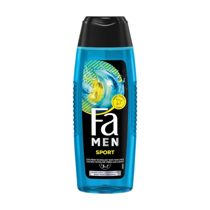 Jednoducho očarujúce – sprchovacie gély Fa ponúkajú bohatú starostlivosť skombinovanú s osviežujúcimi vôňami. V závislosti na Vašich potrebách, relaxačné alebo povzbudzujúce – pre pocit hodvábne jemnej pokožky. Každý sprchovací gél Fa tvorí perfektnú kombináciu starostlivosti a sviežosti – dar pre Vaše telo i myseľ. Pocíťte novú energiu – od hlavy až po päty - receptúra aktívne posilňuje a ošetruje pokožku - osviežujúca a posilňujúca vôňa - vhodné na každodenné použitie ako šampón Príjemné posilnenie pre telo a myseľ. Získajte späť svoju energiu so sprchovacím gélom Fa Active Sport.