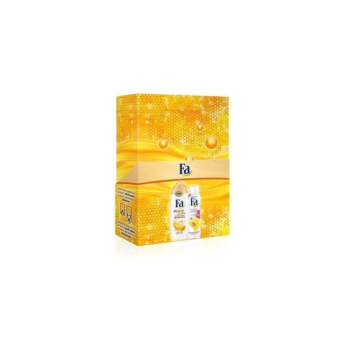 Fa Dámska darčeková kazeta, Fa sprchovací gél Honey Elixir 250ml + Fa dezodorant Floral Protect 150ml Darčeková kazeta obsahuje: - Fa sprchovací gél Honey Elixir 250ml - Užite si povzbudzujúci pocit s osviežujúcou vôňou žltého kosatca a výťažkom z medu. Ošetrujúci sprchovací gél chráni pokožku pred vysušením bez zanechávania mastných zvyškov. - Fa dezodorant Floral Protect 150ml - Okamžitý pocit sucha s vôňou orchideí a sirôtok. Mikroabsorpčné látky zadržia a pohlcujú pot pre ochranu až do 48 hodín. S jemným a presným systémom aplikácie.