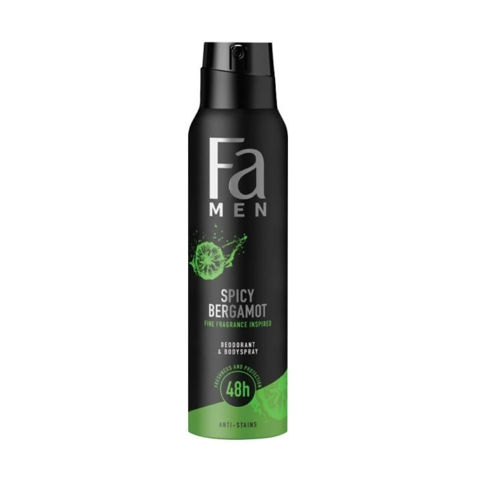 Osviež svoje telo a myseľ a nechaj svoje zmysly vydať sa na dobrodružnú cestu založenú na korenistých bergamotových akordoch. Pánsky telový sprej inšpirovaný vôňou Fa obsahuje vegánske zloženie, ktoré účinne bojuje proti baktériám spôsobujúcim zápach a zabezpečuje dlhotrvajúcu ochranu až na 48 hodín. Fa Men Spicy Bergamot produkty sa starajú o pokožku aj planétu. Tento dezodorant pre mužov neobsahuje zložky živočíšneho pôvodu a má zloženie šetrné k pokožke, ktoré je dermatologicky testované.