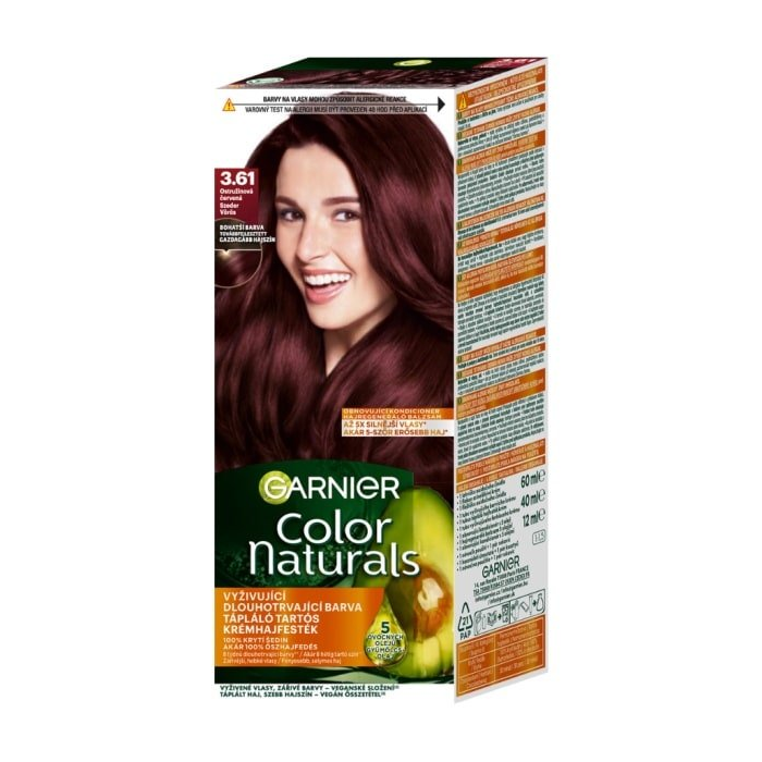 Vyživujúca farba na vlasy Garnier Color Naturals s dvojitou ochranou. Krémové zloženie preniká do hĺbky vlasových vlákien a vypĺňa ich sýtou farbou. Farba je uzatvorená vo vnútri vlasov a chránená pred vymývaním. Dokonale kryje šediny. Vaše vlasy sú chránené a farba zostáva sýta až do ďalšieho farbenia.