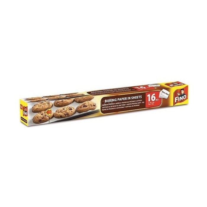 Papier na pečenie FINO predstavuje veľmi modernú pomôcku na pečenie všetkých druhov pokrmov. Nemusíte hľadať nožnice, papier je už pripravený a narezaný na hárky. Je obojstranne použiteľný a môžete ním vyložiť akúkoľvek formu alebo plech. Hárky pasujú na obvyklý rozmer plechu 42 × 38 cm. Vďaka papieru na pečenie teda odpadá zdĺhavé vymazávanie a vysypávanie foriem. Papier na pečenie je preto jasnou voľbou aj pre priaznivcov zdravého spôsobu prípravy pokrmov s použitím minimálneho množstva tuku.