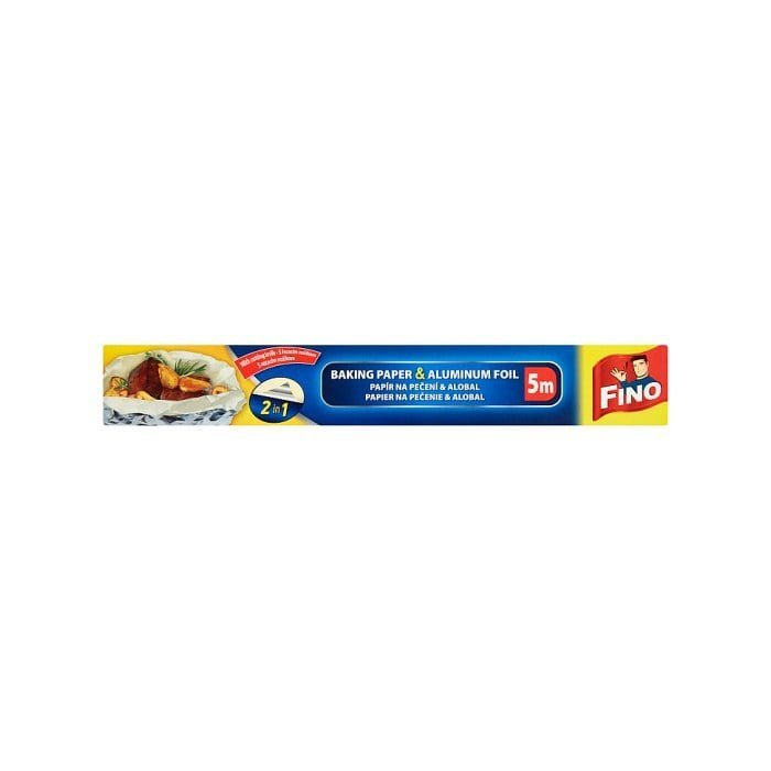 Papier na pečenie FINO Alobal - papier na pečenie 2 v 1 je novinka značky, ktorá kombinuje výhody a obľúbené funkcie alobalu a papiera na pečenie. Z jednej strany nájdete papier na pečenie, ktorý je opatrený silikónovou vrstvou, takže pripravované potraviny nepriľnú k forme ani plechu. Z druhej strany nájdete hliníkovú fóliu, ktorá sa postará o to, aby počas pečenia pokrmu nedochádzalo k úniku tepla a prepečenie bolo rovnomerné. Alobal - papier na pečenie 2 v 1 sa vám skvele osvedčí aj na pevné balenie studených aj práve upečených pokrmov. Jednak sa vám s ním nestane, že by ste pred vlastnou konzumáciou museli najskôr vyberať kúsky papiera alebo alobalu zo desiaty, jednak pokrm vďaka hliníkovej vrstve uchováte na určitú dobu teplý.